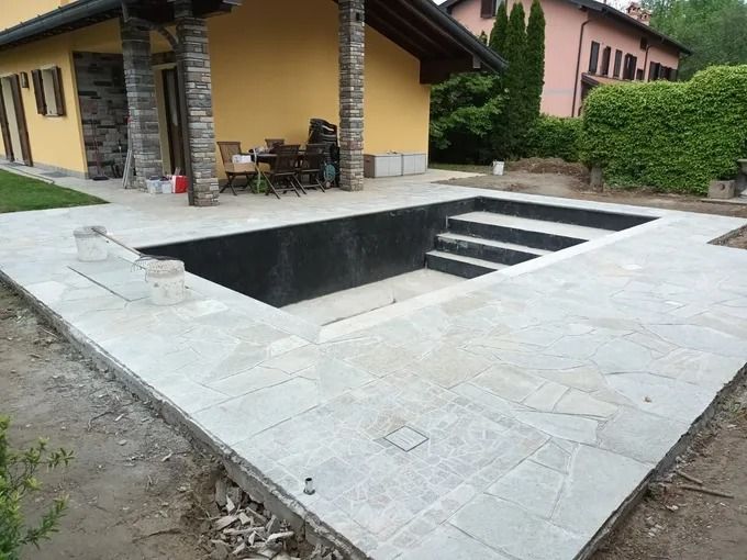 strutture per esterni come barbecue in muratura, forni a legna, angoli giardino e piscine.