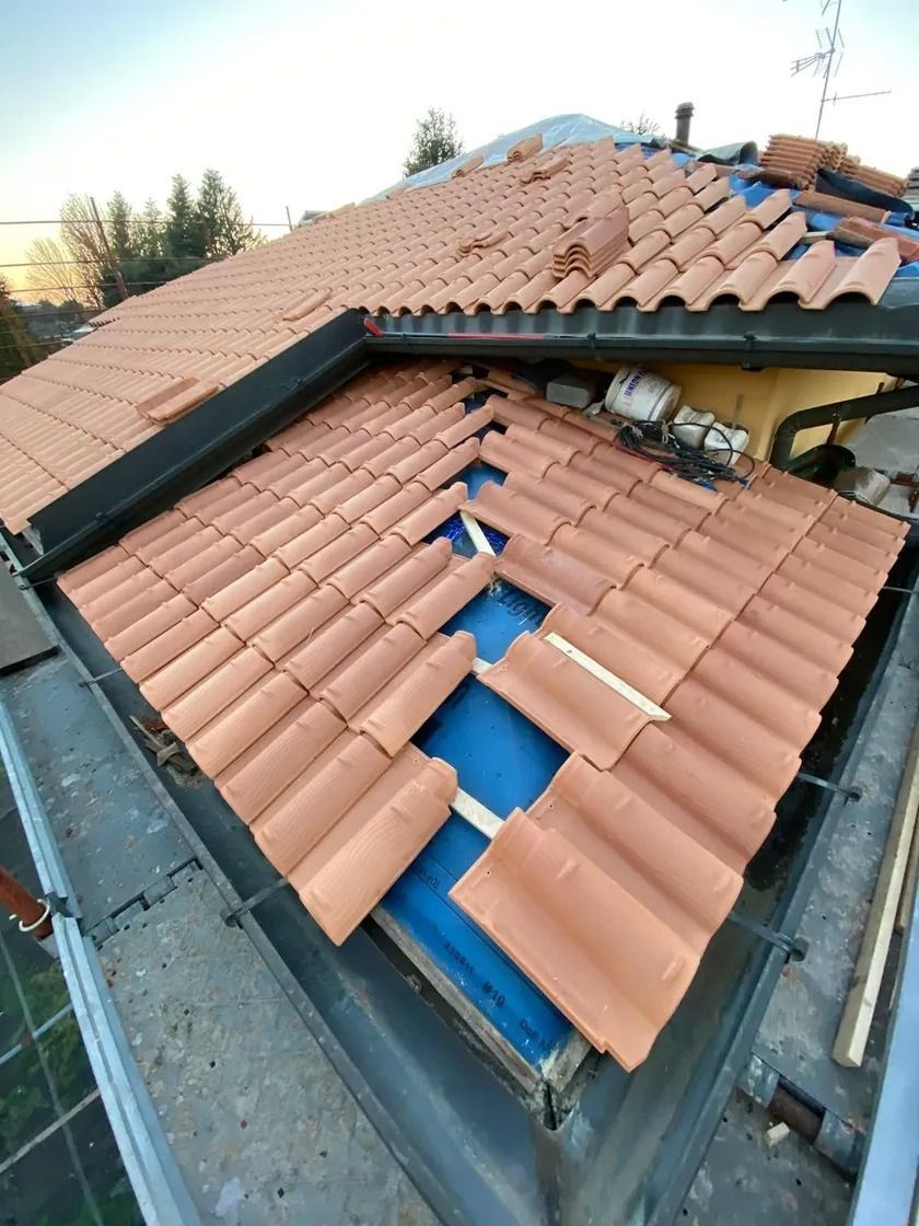 coperture con posa di Velux e comignoli.